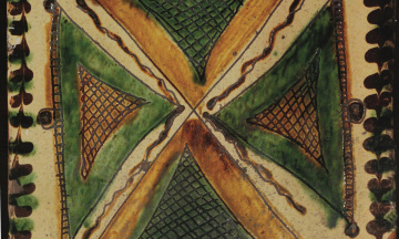 In dimly lit Hutsul homes with their small windows and low roofs these shiny bowls and tiles were indeed a source of the sun, acting on its behalf as every sun beam or flicker from a wood-burning stove would glow and shimmer upon the glazed ceramic surfaces.